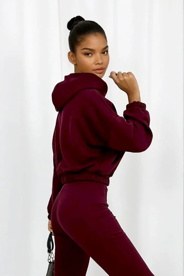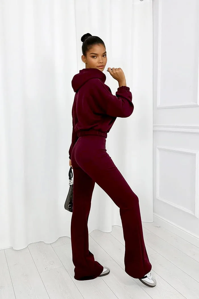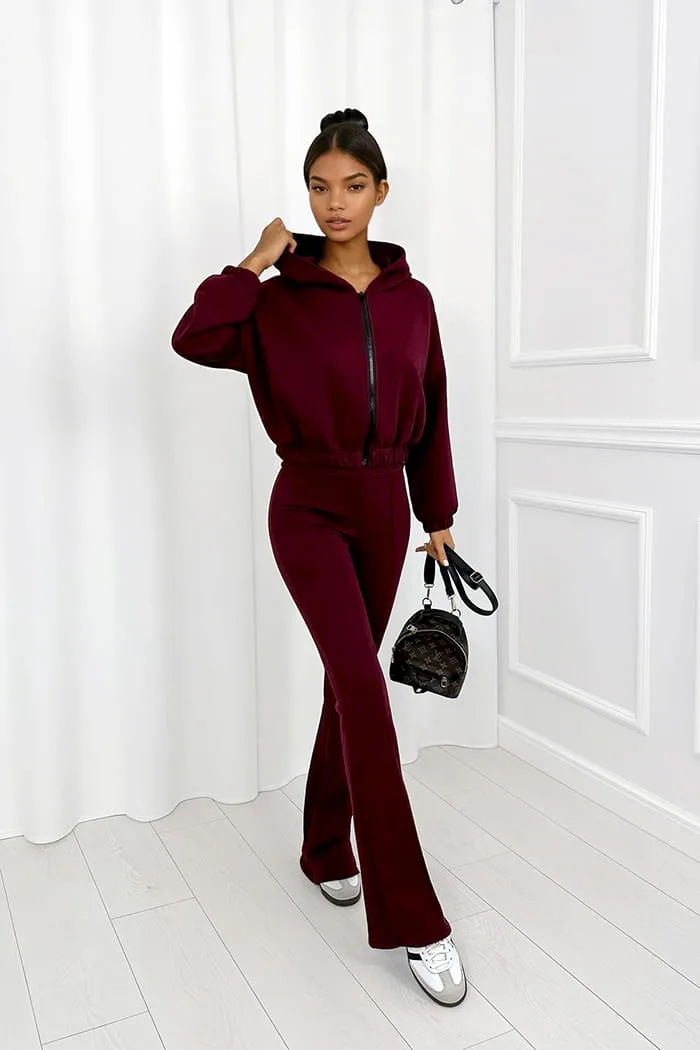 Komplet dresowy z dzwonami Melissa bordowy to Must-have w Twojej szafie! Komfortowy komplet dresowy z bawełny – połączenie wygody i nowoczesnego designu.