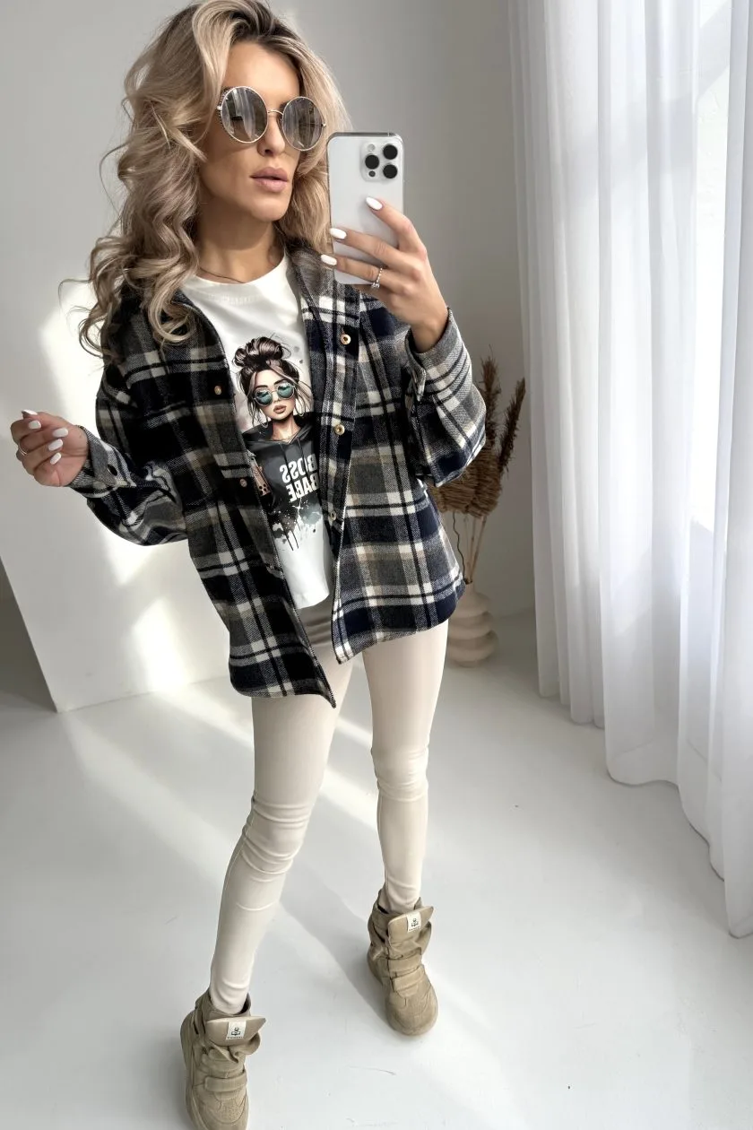 To model, który idealnie wpisuje się w trend „casual chic” – oversize + kratka = absolutny must have!